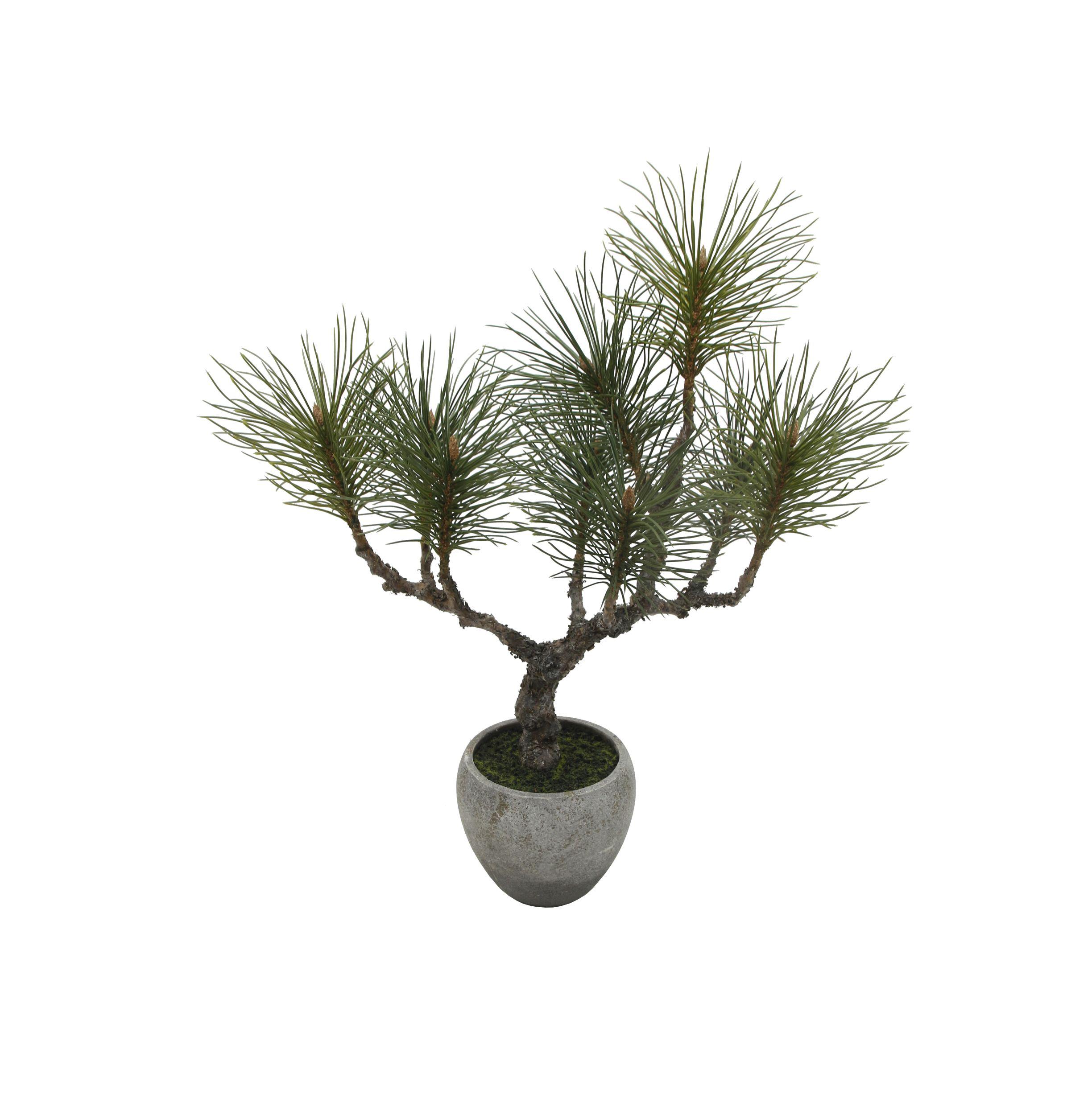 13" Five-pronged pine with a bow planted in a cement pot
