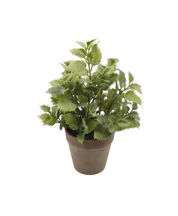 10" mint leaves in a red grey glue pot