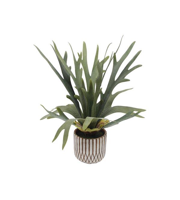 13" large antler leaves planted in red vinyl pot