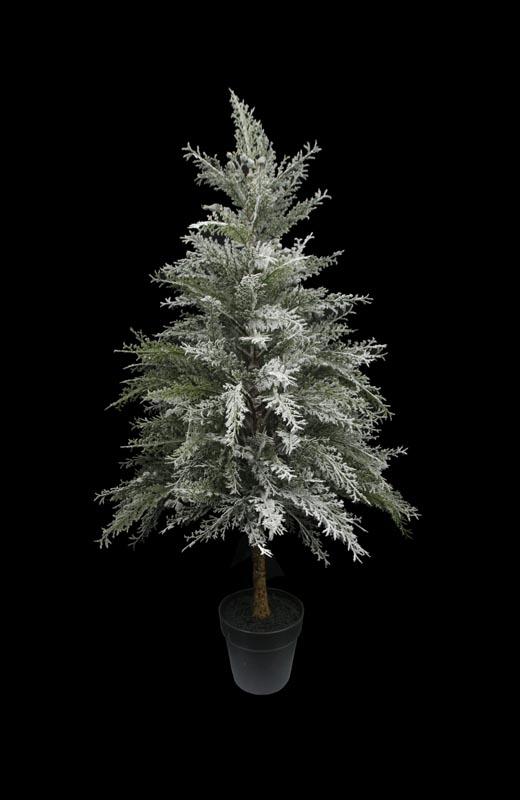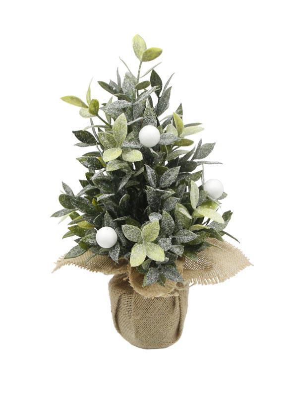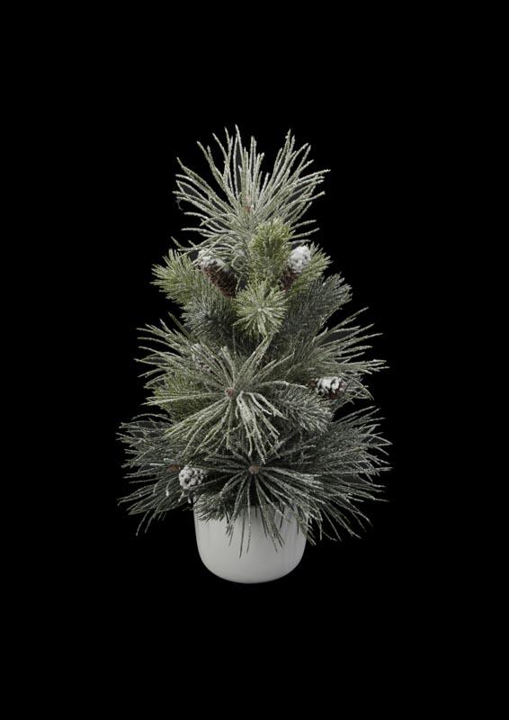 13" Five-pronged pine with a bow planted in a cement pot
