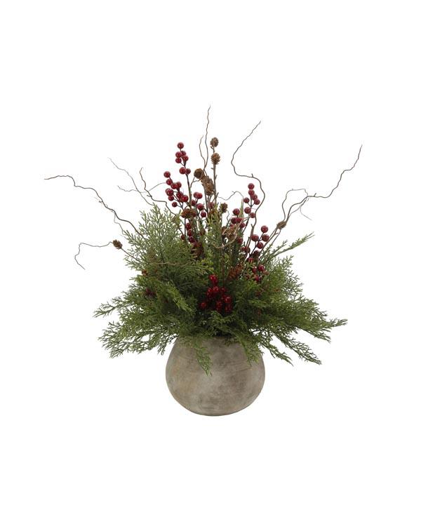 20" large pine needle and fruit seed cement pot