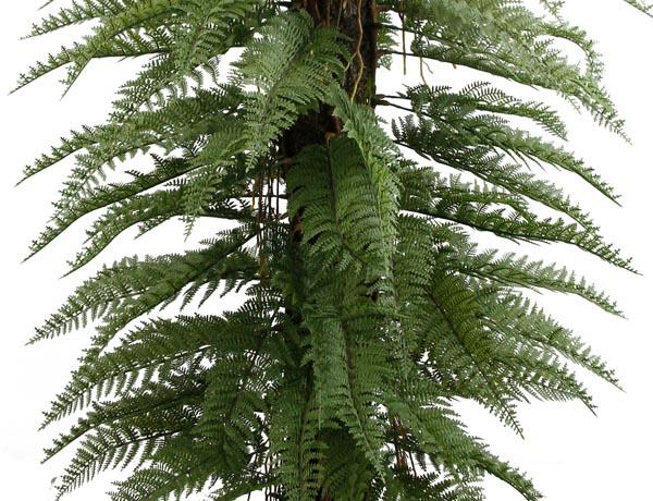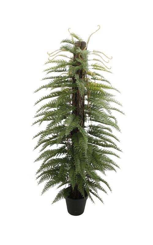 60" A black rubber pot is planted on the top of a double-layered fern leaf tree