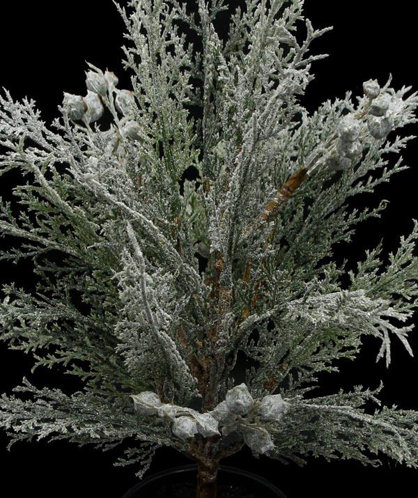 14" Cypress leaf and fruit variety black rubber pot