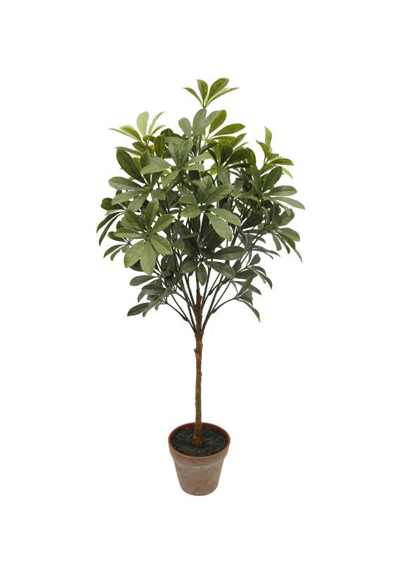 60" A black rubber pot is planted on the top of a double-layered fern leaf tree