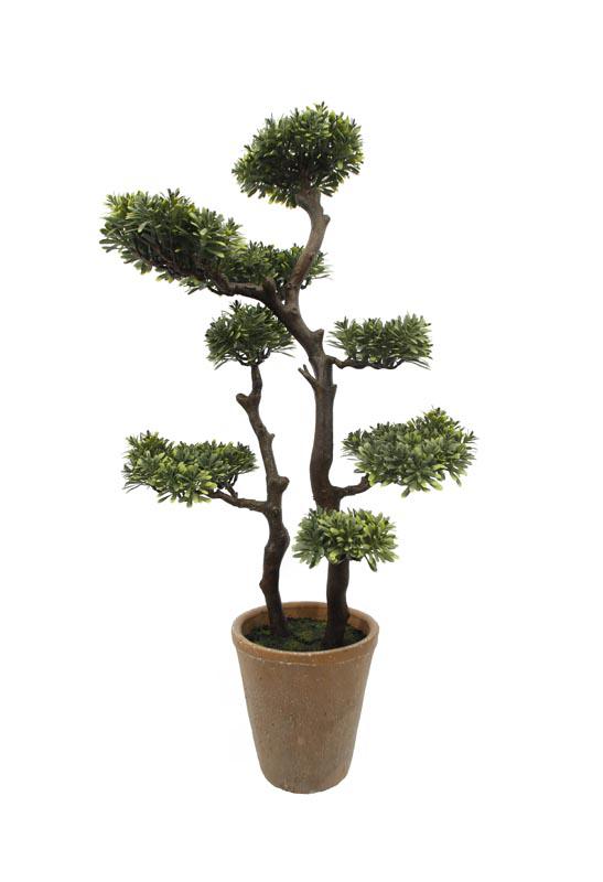 41" A black rubber pot is planted on the top of a double-layered fern leaf tree